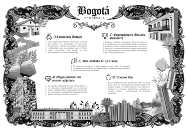 Realizamos ilustraciones para el periódico Huellas, retratando la vida en el barrio La Perseverancia, sus actividades, tradiciones e información de interés, fomentando identidad y conexión comunitaria.