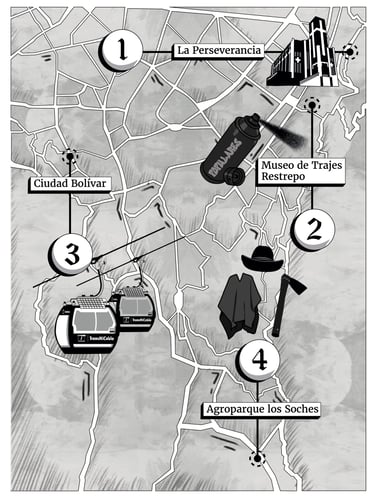Realizamos ilustraciones para el periódico Huellas, retratando la vida en el barrio La Perseverancia, sus actividades, tradiciones e información de interés, fomentando identidad y conexión comunitaria.